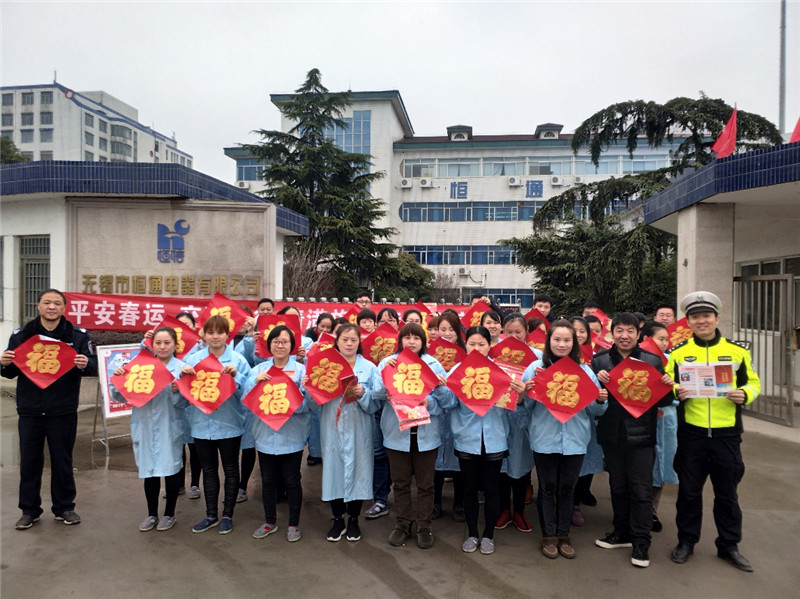 2019年1月17日,無錫市經(jīng)開區(qū)交警走進無錫市恒通電器有限公司,攜手恒通電器員工共同開展2019年“平安春運,交警同行”經(jīng)開區(qū)交警2019年春運交通安全宣傳行動。