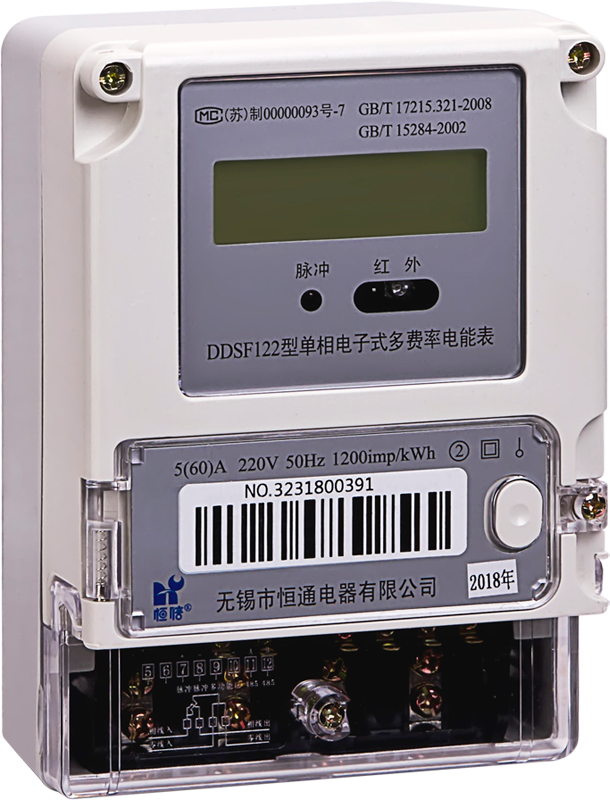 DDSF122型單相電子式多費率電能表,采用先進的電能表專用集成電路、高性能MCU、內(nèi)置溫度補償?shù)挠布r鐘等技術,用于額定頻率為50Hz單相電網(wǎng)中的交流有功電能的分時計量、電力參數(shù)測量、遠程信息采集。具有精度高、功能強、穩(wěn)定性好等特點,其通信協(xié)議符合DL/T645-2007標準。