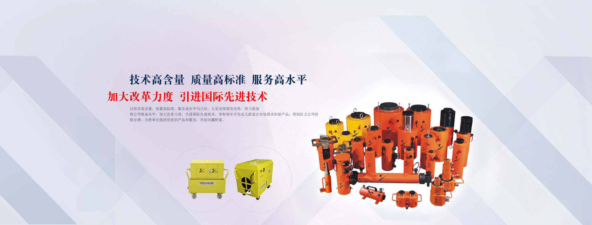 公司歷經(jīng)數(shù)十載,本著敬業(yè)、信譽(yù)、創(chuàng)新之精神與全國(guó)專(zhuān)業(yè)知名科研單位及一流教授、高級(jí)工程師、行業(yè)專(zhuān)家聯(lián)手,參照當(dāng)前國(guó)內(nèi)外知名企業(yè)的同類(lèi)產(chǎn)品技術(shù)參數(shù),憑著雄厚的技術(shù)力量與精良的裝備,研制出適合我國(guó)產(chǎn)業(yè)需要的各款超高壓液壓電動(dòng)及手動(dòng)千斤頂及其配套產(chǎn)品超高壓油泵。多年來(lái),已經(jīng)為國(guó)內(nèi)外眾多企業(yè)單位提供了超過(guò)幾千套產(chǎn)品,其中很大部分產(chǎn)品是根據(jù)使用單位需要,根據(jù)實(shí)際需求定設(shè)計(jì)生產(chǎn),適應(yīng)各種不同層次、不同特點(diǎn)的需求,廣泛適用于重物推頂、靜力壓樁、機(jī)械拆卸、設(shè)備校調(diào)、電力、石化、基礎(chǔ)沉降、航空、鐵路橋梁及船舶修造等等