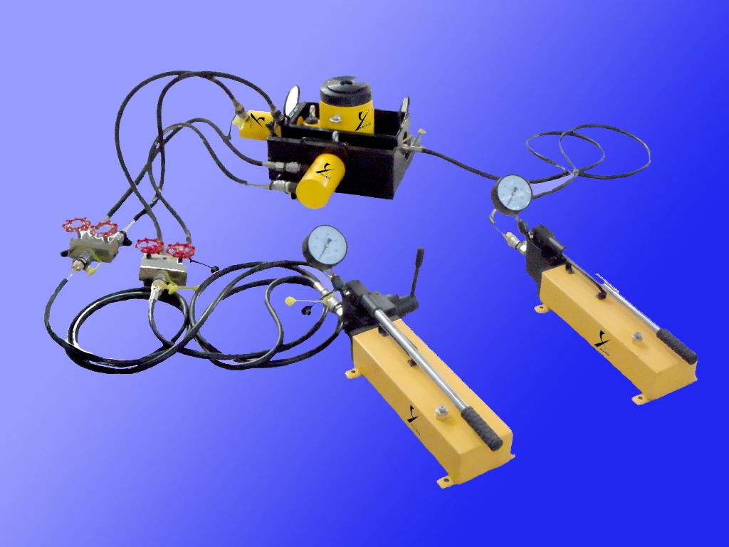 WCH系列三維調(diào)整組合機(jī)是與我廠生產(chǎn)的超高壓單、雙手動泵配套使用的一種三坐標(biāo)頂升、位移專用工具,廣泛應(yīng)用于造船、鐵路公路橋梁或類似橋梁重物的位移作業(yè)。進(jìn)行低高度、短距離的垂直方向(Z)橫向(X)以及縱向(Y)的位移。該產(chǎn)品的滑移摩擦副由底座、垂直頂升座上的不銹鋼板與垂直頂升座、垂直頂升千斤頂(彈簧復(fù)位。如客戶需要也可以定做雙油路)底部的高強(qiáng)度滑移板組成,具有摩擦系數(shù)小,且滑移平穩(wěn)。該產(chǎn)品具有設(shè)計(jì)先進(jìn)、結(jié)構(gòu)合理、承載能力大、位移準(zhǔn)確、安全可靠、維修方便、勞動強(qiáng)度低、提高效率等特點(diǎn)。垂直頂升千斤頂可作為液壓千斤頂單獨(dú)使用。